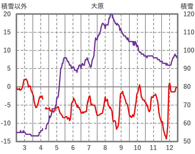 | 日 | 時 | 気温 | 降水 | 風向/風速 | 日照 | 積雪 | 降雪 |