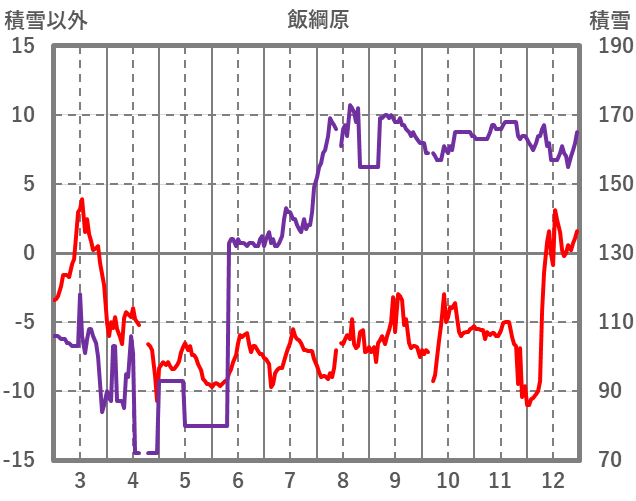 | 日 | 時 | 気温 | 降水 | 風向/風速 | 日照 | 積雪 | 降雪 |