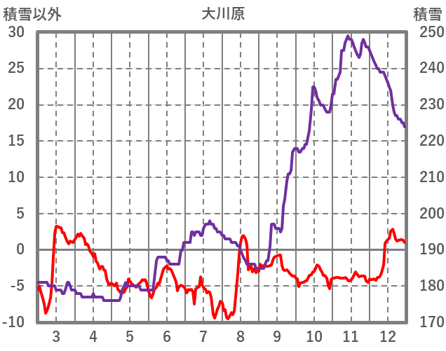 | 日 | 時 | 気温 | 降水 | 風向/風速 | 日照 | 積雪 | 降雪 |
