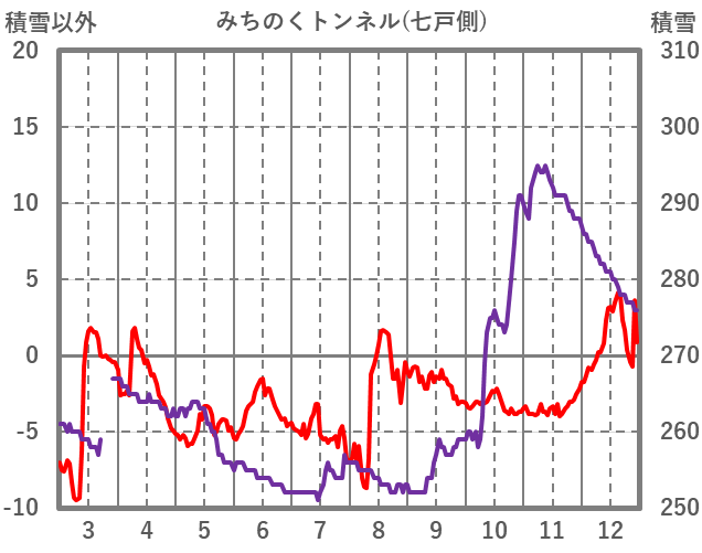 | 日 | 時 | 気温 | 降水 | 風向/風速 | 日照 | 積雪 | 降雪 |