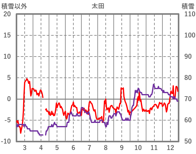 | 日 | 時 | 気温 | 降水 | 風向/風速 | 日照 | 積雪 | 降雪 |