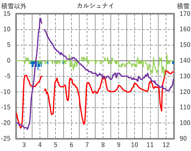 | 日 | 時 | 気温 | 降水 | 風向/風速 | 日照 | 積雪 | 降雪 |