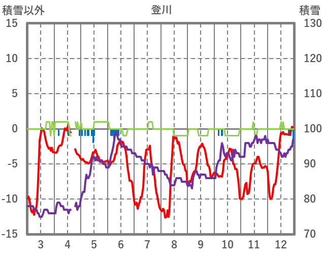 | 日 | 時 | 気温 | 降水 | 風向/風速 | 日照 | 積雪 | 降雪 |