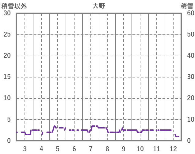 | 日 | 時 | 気温 | 降水 | 風向/風速 | 日照 | 積雪 | 降雪 |