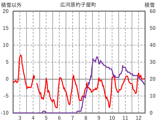 | 日 | 時 | 気温 | 降水 | 風向/風速 | 日照 | 積雪 | 降雪 |
