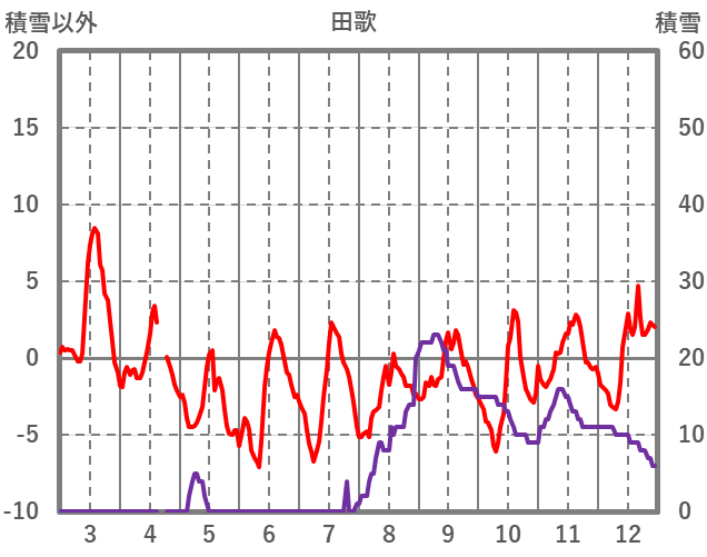| 日 | 時 | 気温 | 降水 | 風向/風速 | 日照 | 積雪 | 降雪 |