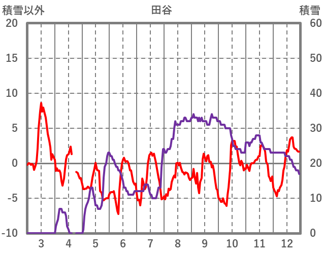 | 日 | 時 | 気温 | 降水 | 風向/風速 | 日照 | 積雪 | 降雪 |