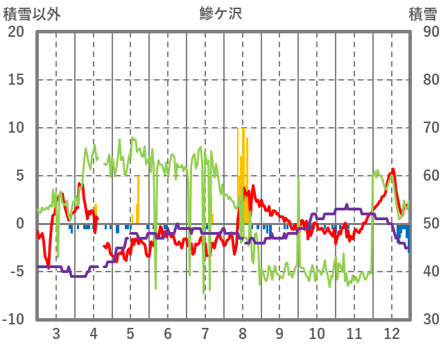 | 日 | 時 | 気温 | 降水 | 風向/風速 | 日照 | 積雪 | 降雪 |
