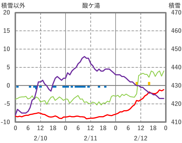 | 日 | 時 | 気温 | 降水 | 風向/風速 | 日照 | 積雪 | 降雪 |