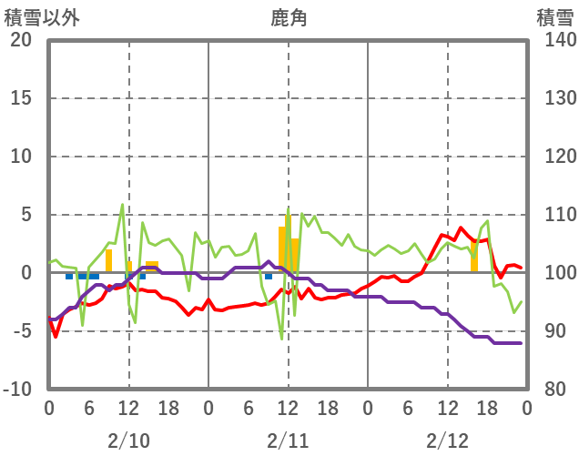 | 日 | 時 | 気温 | 降水 | 風向/風速 | 日照 | 積雪 | 降雪 |