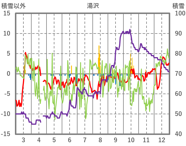 | 日 | 時 | 気温 | 降水 | 風向/風速 | 日照 | 積雪 | 降雪 |