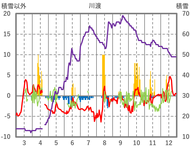 | 日 | 時 | 気温 | 降水 | 風向/風速 | 日照 | 積雪 | 降雪 |