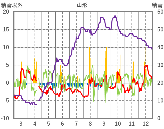 | 日 | 時 | 気温 | 降水 | 風向/風速 | 日照 | 積雪 | 降雪 |