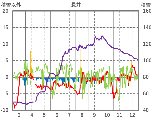 | 日 | 時 | 気温 | 降水 | 風向/風速 | 日照 | 積雪 | 降雪 |