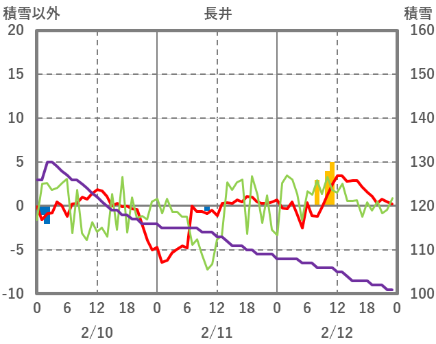 | 日 | 時 | 気温 | 降水 | 風向/風速 | 日照 | 積雪 | 降雪 |