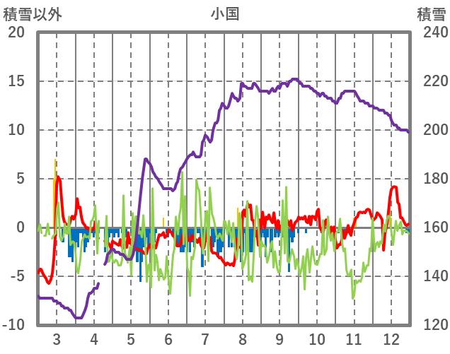 | 日 | 時 | 気温 | 降水 | 風向/風速 | 日照 | 積雪 | 降雪 |