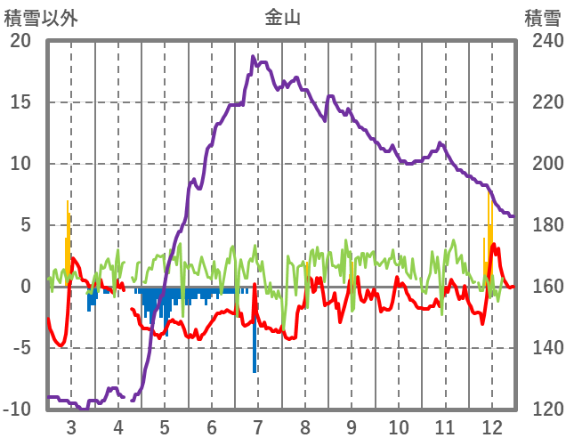 | 日 | 時 | 気温 | 降水 | 風向/風速 | 日照 | 積雪 | 降雪 |