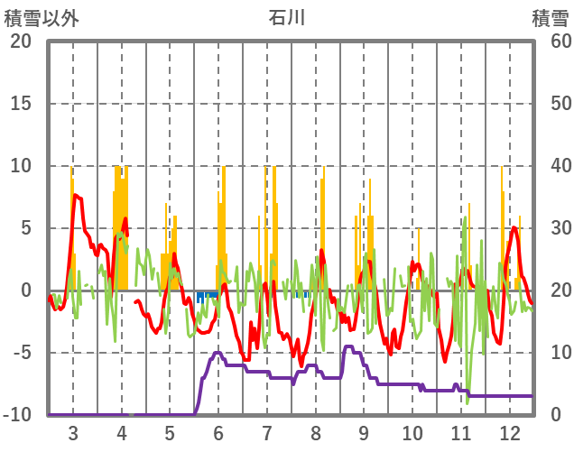 | 日 | 時 | 気温 | 降水 | 風向/風速 | 日照 | 積雪 | 降雪 |
