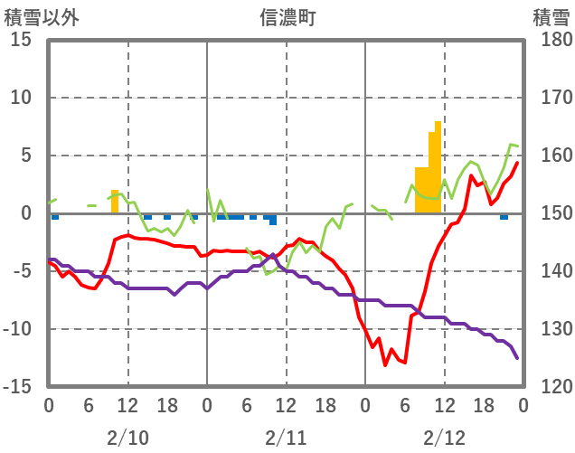 | 日 | 時 | 気温 | 降水 | 風向/風速 | 日照 | 積雪 | 降雪 |