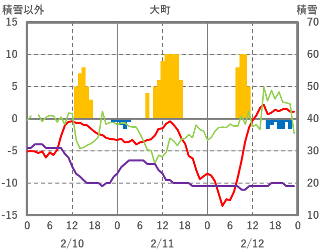 | 日 | 時 | 気温 | 降水 | 風向/風速 | 日照 | 積雪 | 降雪 |
