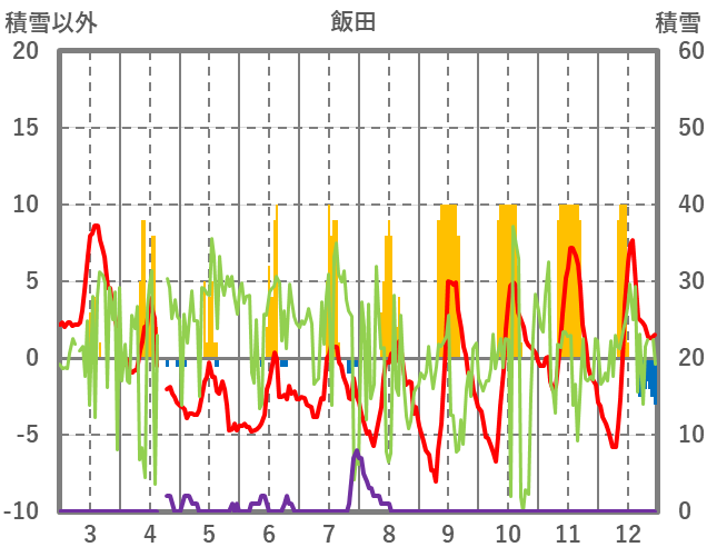 | 日 | 時 | 気温 | 降水 | 風向/風速 | 日照 | 積雪 | 降雪 |