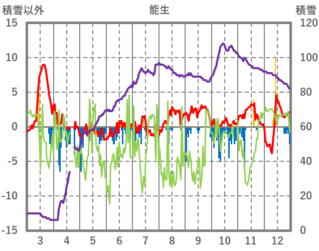 | 日 | 時 | 気温 | 降水 | 風向/風速 | 日照 | 積雪 | 降雪 |
