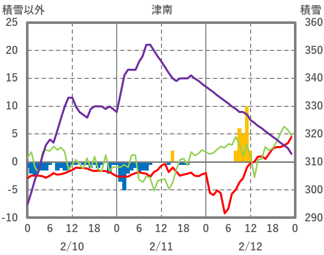 | 日 | 時 | 気温 | 降水 | 風向/風速 | 日照 | 積雪 | 降雪 |