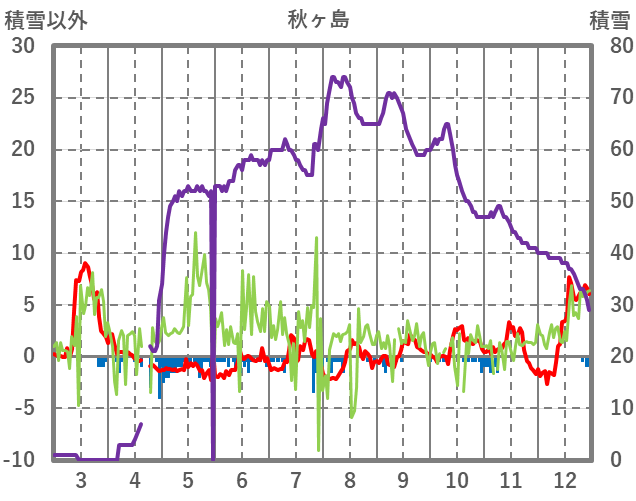 | 日 | 時 | 気温 | 降水 | 風向/風速 | 日照 | 積雪 | 降雪 |