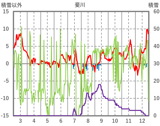 | 日 | 時 | 気温 | 降水 | 風向/風速 | 日照 | 積雪 | 降雪 |
