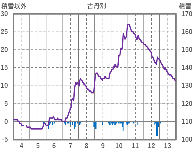 | 日 | 時 | 気温 | 降水 | 風向/風速 | 日照 | 積雪 | 降雪 |