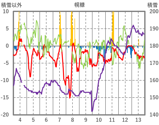 | 日 | 時 | 気温 | 降水 | 風向/風速 | 日照 | 積雪 | 降雪 |