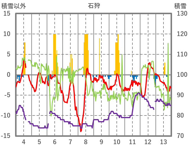 | 日 | 時 | 気温 | 降水 | 風向/風速 | 日照 | 積雪 | 降雪 |