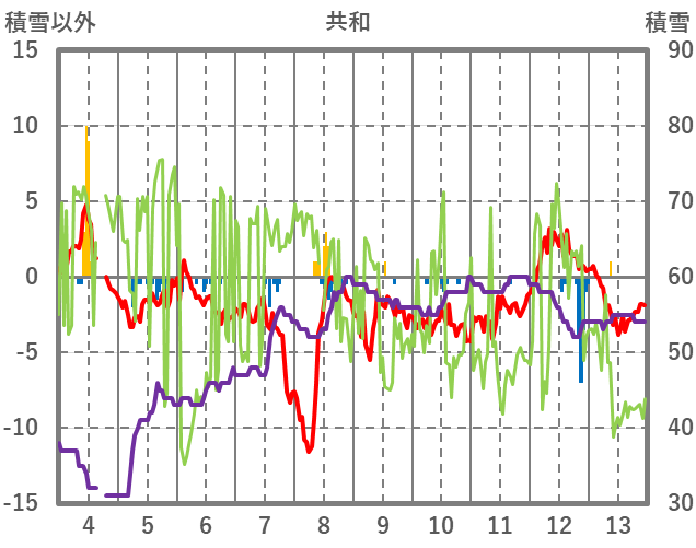 | 日 | 時 | 気温 | 降水 | 風向/風速 | 日照 | 積雪 | 降雪 |