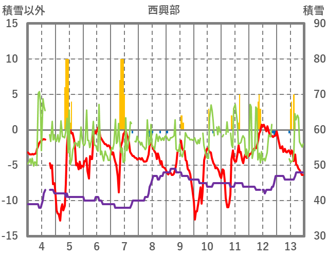 | 13 | -2.9 | 0 | WNW/4 | 18 | 44 | 0 | |