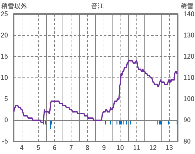| 日 | 時 | 気温 | 降水 | 風向/風速 | 日照 | 積雪 | 降雪 |