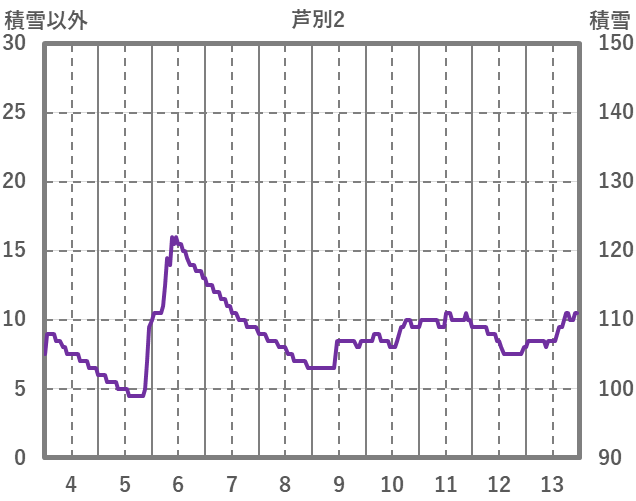 | 日 | 時 | 気温 | 降水 | 風向/風速 | 日照 | 積雪 | 降雪 |