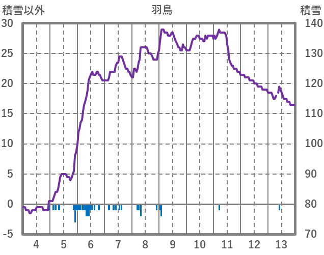 | 日 | 時 | 気温 | 降水 | 風向/風速 | 日照 | 積雪 | 降雪 |