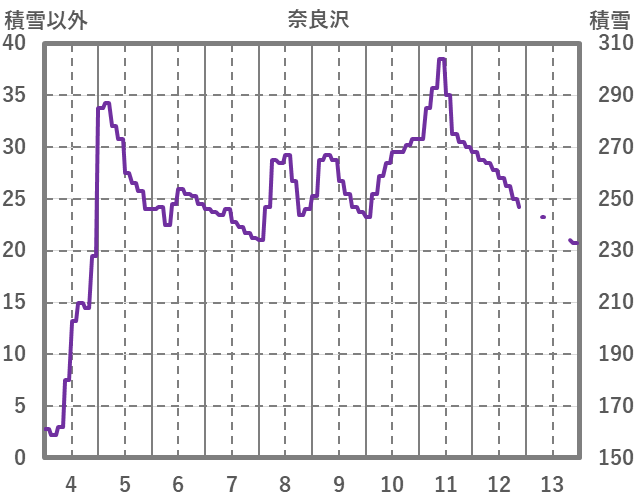 | 日 | 時 | 気温 | 降水 | 風向/風速 | 日照 | 積雪 | 降雪 |