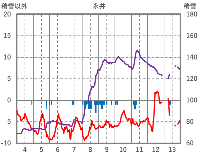| 日 | 時 | 気温 | 降水 | 風向/風速 | 日照 | 積雪 | 降雪 |