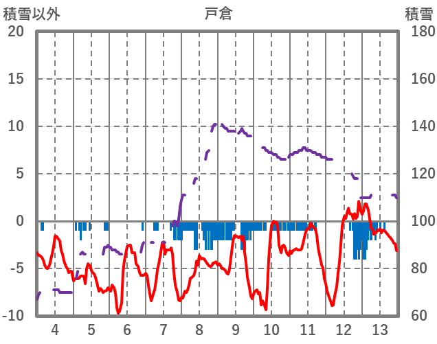 | 日 | 時 | 気温 | 降水 | 風向/風速 | 日照 | 積雪 | 降雪 |