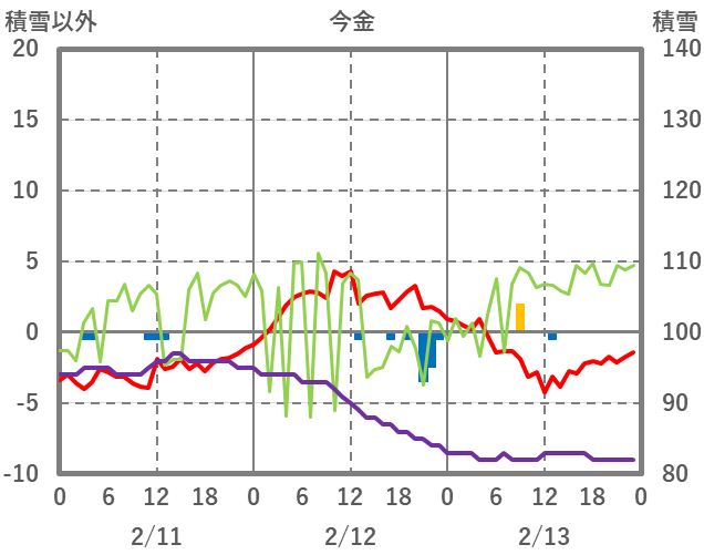 | 日 | 時 | 気温 | 降水 | 風向/風速 | 日照 | 積雪 | 降雪 |