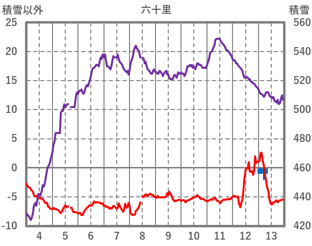 | 日 | 時 | 気温 | 降水 | 風向/風速 | 日照 | 積雪 | 降雪 |