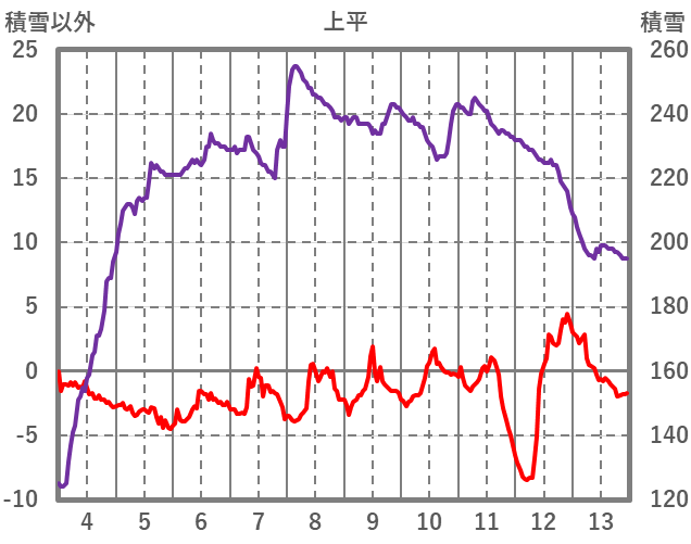 | 日 | 時 | 気温 | 降水 | 風向/風速 | 日照 | 積雪 | 降雪 |