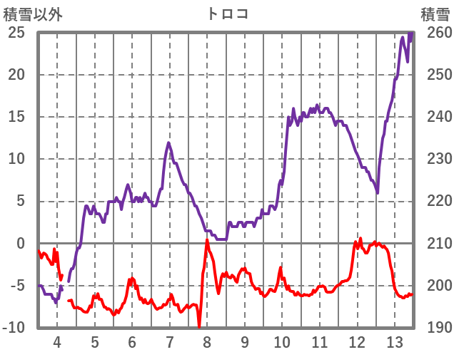 | 日 | 時 | 気温 | 降水 | 風向/風速 | 日照 | 積雪 | 降雪 |