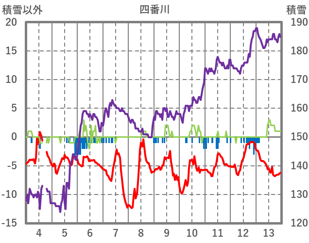 | 日 | 時 | 気温 | 降水 | 風向/風速 | 日照 | 積雪 | 降雪 |