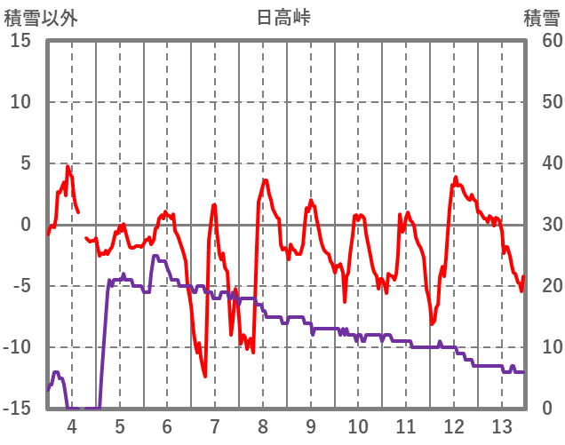 | 日 | 時 | 気温 | 降水 | 風向/風速 | 日照 | 積雪 | 降雪 |