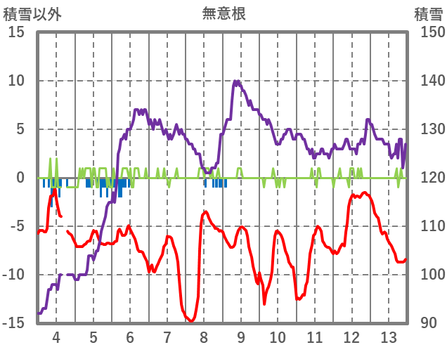 | 日 | 時 | 気温 | 降水 | 風向/風速 | 日照 | 積雪 | 降雪 |