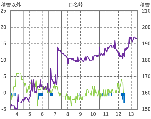 | 日 | 時 | 気温 | 降水 | 風向/風速 | 日照 | 積雪 | 降雪 |