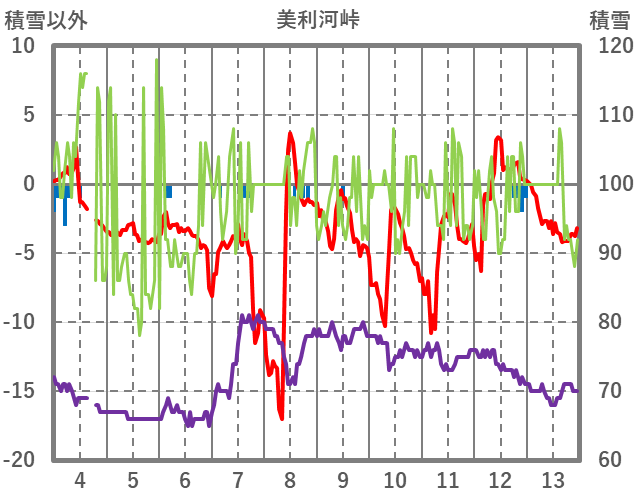 | 日 | 時 | 気温 | 降水 | 風向/風速 | 日照 | 積雪 | 降雪 |