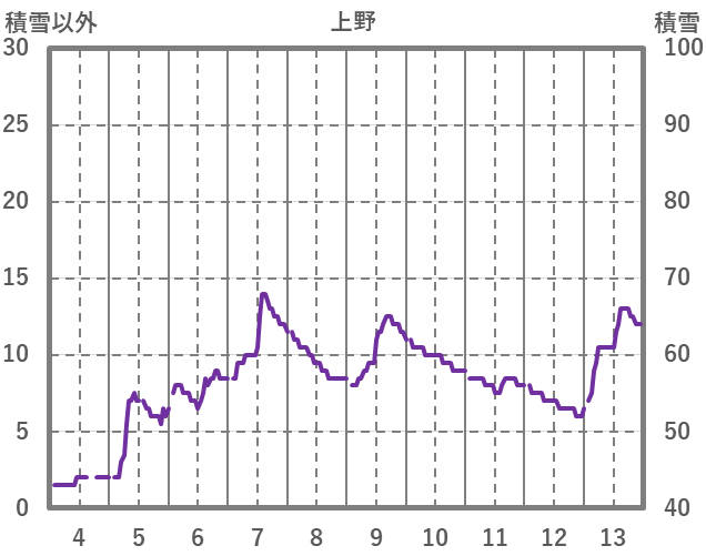 | 日 | 時 | 気温 | 降水 | 風向/風速 | 日照 | 積雪 | 降雪 |